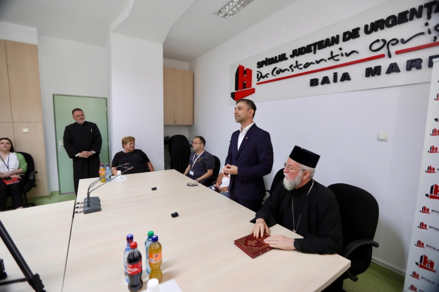 Au fost prezenți domnul Gabriel Zetea, președintele Consiliului Județean Maramureș, Dr. Lucian Bogdan-Mihail, directorul medical al instituției, Arhid. Teodosie Bud, consilier economic, Arhid. Vasile Pop, consilier eparhial pentru protocol și personalul medical al spitalului.