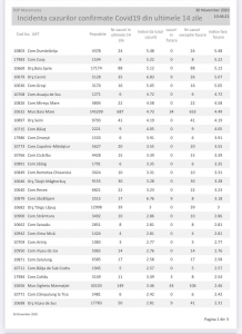 Întâi să vedem care este situația numărului de cazuri. Conform raportării de luni, 30 noiembrie, în ultimele două săptămâni, s-au înregistrat 1.593 cazuri COVID-19 în județ, cu tot cu cele 114 cazuri din focare. Așadar, la numărul total, incidența de cazuri la mia de locuitori a fost de 3,03, în timp ce incidența conform celor 1.479 cazuri care nu provin din focare a fost de 2,81. Cele mai multe cazuri s-au înregistrat tot în Baia Mare (687), reședința de județ fiind urmată de Sighetu Marmației (149), Baia-Sprie (88), Vișeu de Sus (50), Târgu Lăpuș (39), Cavnic (35) și Seini (31).