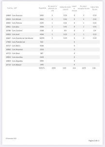 Însă, clasamentul incidenței are altă ordine, întrucât se calculează numărul de cazuri la mia de locuitori. Trebuie precizat și că luată în considerare este incidența calculată fără focare! Astfel, pe primul loc se află, acum, comuna Dumbrăvița (24 cazuri în 14 zile – incidența 5,48), urmată de Coaș (8 cazuri în 14 zile – incidența 5,22) și orașul Baia-Sprie (88 cazuri în 14 zile – incidența 5,12). În clasament vine, apoi, orașul Cavnic (total 35 cazuri în 14 zile – incidența 6,83 cu focare; 9 cazuri sunt în focare; 26 cazuri în 14 zile, fără focare – incidența 5,07). Clasamentul este continuat de Groși (16 cazuri în 14 zile – incidența 5,05), Asuaju de Sus (6 cazuri în 14 zile – incidența 4,72), Mireșu Mare (22 cazuri în 14 zile – incidența 4,58), respectiv municipiul Baia Mare (total 687 cazuri în 14 zile – incidența 4,73; 34 cazuri în focare; 653 cazuri în 14 zile, fără focare – incidența 4,49). În clasament urmează orașul Seini (41 cazuri în 14 zile – incidența 4,19) și comuna Băiuț (9 cazuri în 14 zile – incidența 4,05).