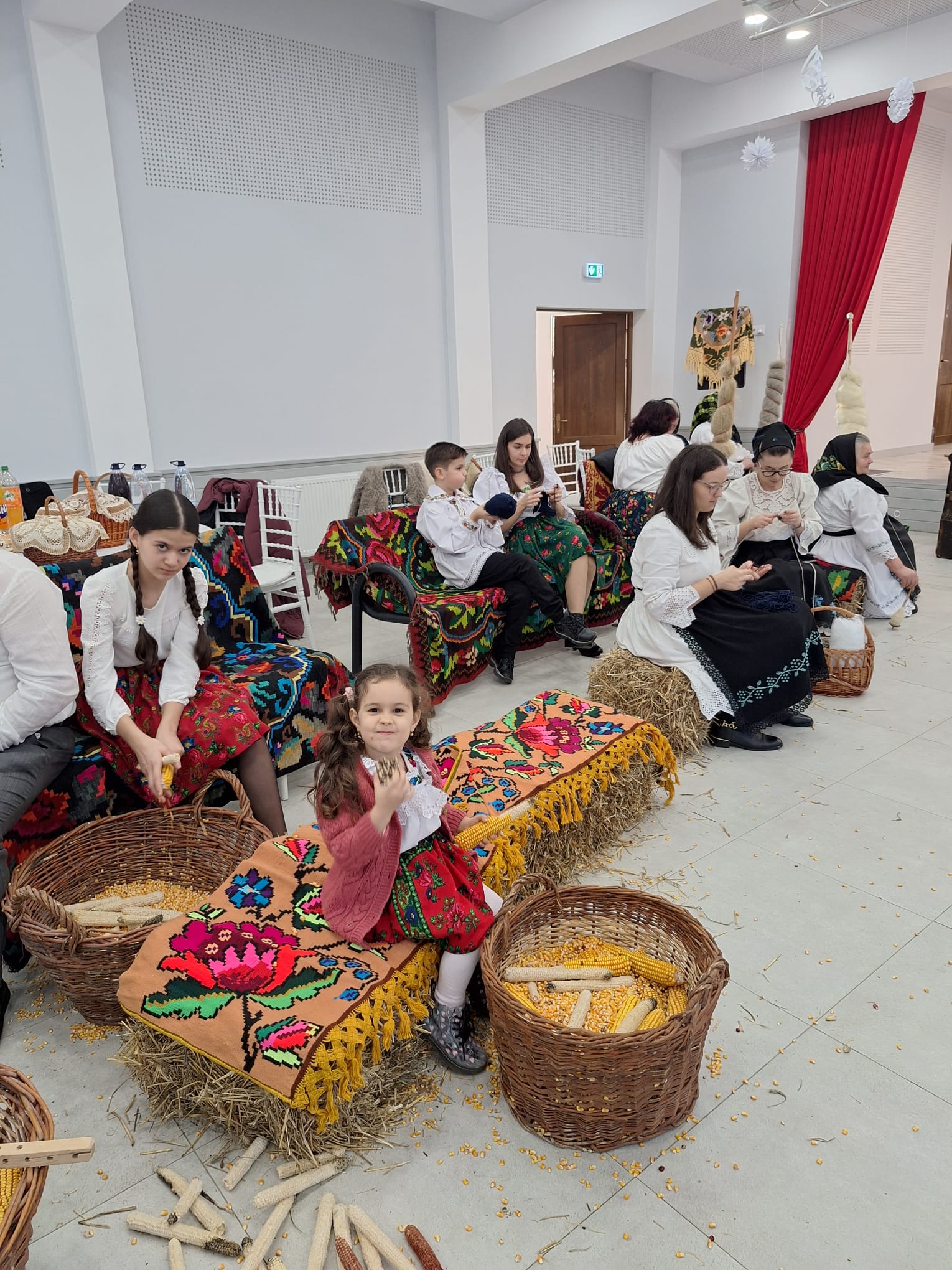Sub privirile curioase ale celor mici, mâinile bătrânelor au început să lucreze, împletind cu migală fire de lână, dând contur unor bucăți de tradiție. Fiecare împunsătură de ac, fiecare nod legat era o poveste spusă altfel – cu răbdare, cu măiestrie, cu suflet. Tinerii au prins din zbor secretele cusăturilor vechi și ale împletiturilor de altădată, descoperind în ele ecoul unui trecut care merită păstrat. Iar când firul poveștilor s-a țesut alături de meșteșug, timpul s-a oprit preț de o clipă, lăsând loc șoaptelor care vorbeau despre satul de demult, despre ierni lungi la gura sobei și despre bucuria lucrului făcut cu drag.