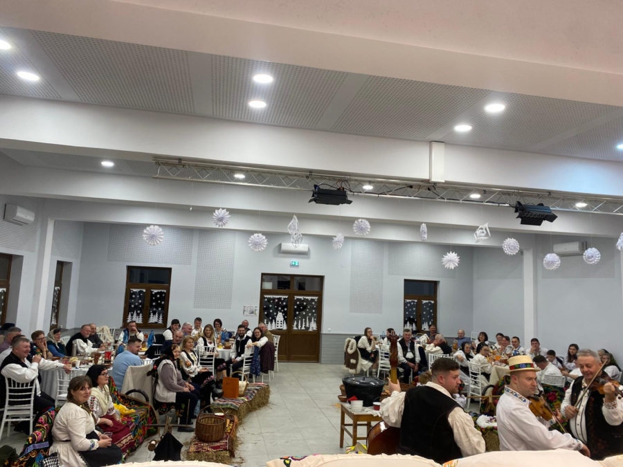După ce mâinile au lucrat și mintea a fost hrănită cu povești, picioarele s-au lăsat purtate de ritmurile vii ale muzicii tradiționale. Ceatăra, contra și gordona au început să cânte, iar satul întreg s-a legat în danț ca pe vremuri. Râsetele copiilor s-au amestecat cu vocile bătrânilor, iar pașii jucăuși ai dansatorilor au bătut podelele într-o bucurie molipsitoare. Jocul de arăduit, roata pe sub mână, toate au prins viață într-o sărbătoare care părea desprinsă din vechile șezători ale Maramureșului.