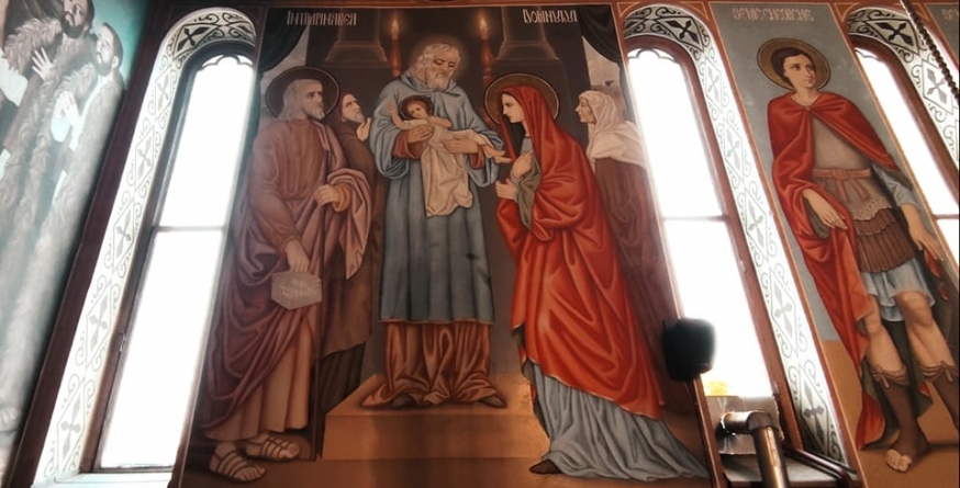 Foto: Icoana Praznicului Întâmpinării Domnului pictată în biserica „Sfinții Apostoli Petru și Pavel” din localitatea Săcălășeni, Protopopiatul Ortodox Român Baia Mare,