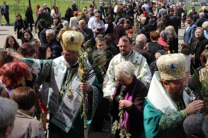 După liturghie soborul şi credincioşii prezenţi au efectuat simbolic, tradiționala procesiune în jurul Catedralei Epicopale, însoţită de cântări de către creştinii cu ramuri de sălcii în mâini; în fapt, o reeditare, la scară mică, a Intrării Domnului în Ierusalim şi de mărturisire a credinţei. Procesiunea s-a încheiat în faţa esplanadei Catedralei, iar cei doi Ierarhi au binecuvântat stâlparele de salcie.