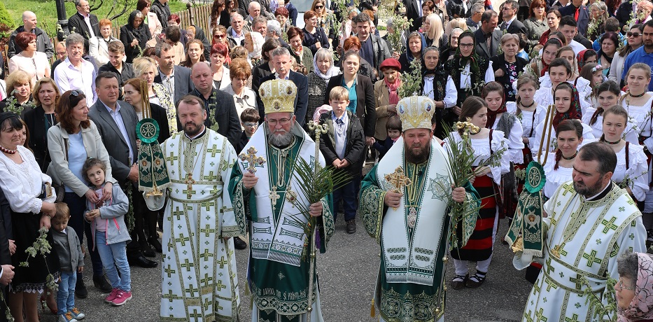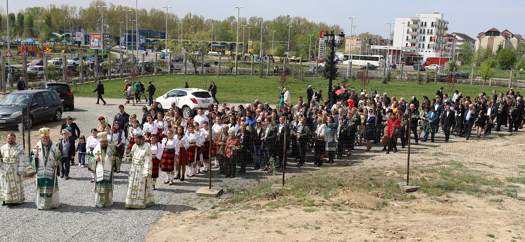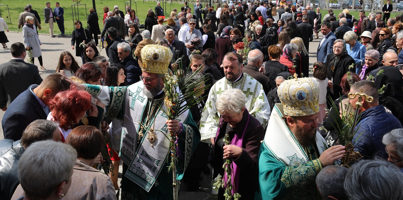 După liturghie soborul şi credincioşii prezenţi au efectuat simbolic, tradiționala procesiune în jurul Catedralei Epicopale, însoţită de cântări de către creştinii cu ramuri de sălcii în mâini; în fapt, o reeditare, la scară mică, a Intrării Domnului în Ierusalim şi de mărturisire a credinţei. Procesiunea s-a încheiat în faţa esplanadei Catedralei, iar cei doi Ierarhi au binecuvântat stâlparele de salcie.