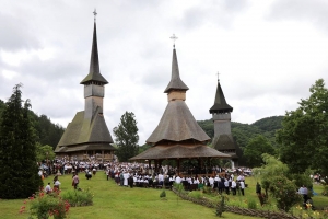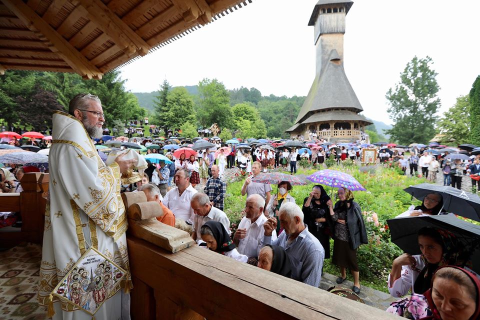 În Altarul de vară începe Sfânta Liturghie. Binecuvântarea este dată de părintele arhimandrit Macarie Motogna, starețul unei alte citadele a ortodoxiei românești – Rohia. În soborul pe măsură, părintele arhimandrit Teofil Pop, starețul Mănăstirii Moisei, părintele Vasile Aurel Pop, protopopul de Sighet, părintele Marcel Oprișan, parohul localității, și alți vrednici preoți și diaconi. Asistându-i de-aproape, cu multă atenție și grijă, într-o continuă solicitudine, maica Filofteia, stareța mănăstirii. Ploaia (de vară) și Soarele alternează; amândoi vor să participe, cumva, la înălțătoarea slujbă. Peste capetele sutelor de credincioși se unduiesc, lin, psalmodierile Grupului „Theologos” al Catedralei Episcopale și, la momentul pricesnei, vocea ca un har a Ioanei Botiș.