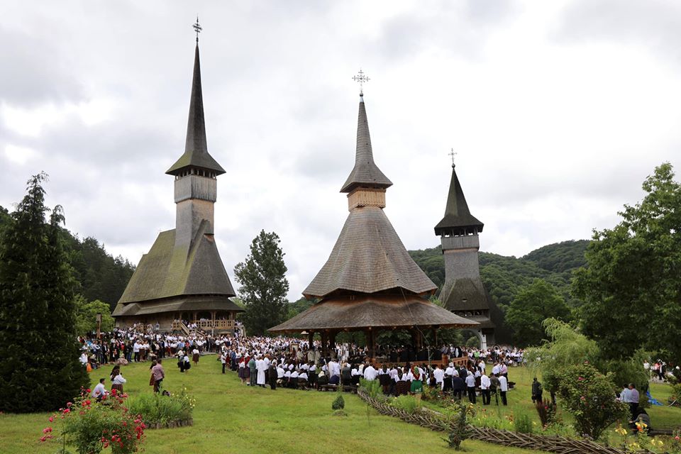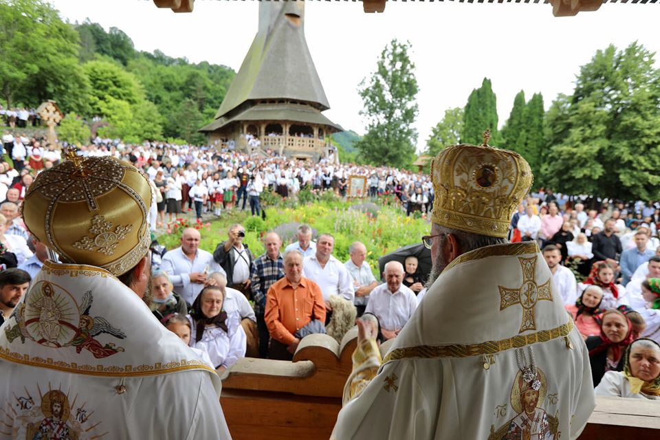 De la Casa Episcopului, cei doi ierarhi coboară pe aleile vii, răsfirate parcă organic în curtea verde a mănăstirii. Într-o cuprindere de ochi, Maramureșul ți se înfățișează cu toată naturalețea sa revelatoare.
