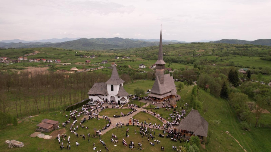 Dar iată că Dumnezeu ne ajută să le facem bucurie celor din Ieud și celor care vin, că vin foarte mulți, vremea a fost și astăzi minunată. Straiele acestea, ale pruncilor din Maramureș și cocoanele părintelui Horațiu Brici, care cântă, care cântă în corul bisericii, sunt minunate, coconii din Ieud sunt minunați, ca și toți pruncii și coconii voievodali ai Maramureșului voievodal. Dăm slavă lui Dumnezeu pentru toate! Hristos a Înviat!”, a spus Preasfințitul Părinte Episcop Iustin.