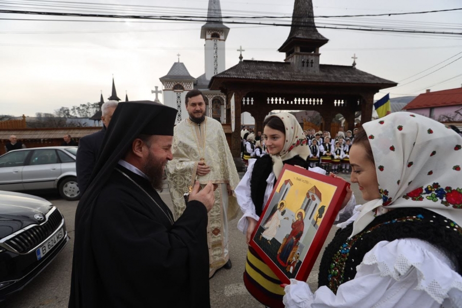 La final, părintele paroh Dinu Brici a mulțumit Preasfințitului Părinte Timotei Sătmăreanul pentru slujire și, în semn de recunoștință și prețuire a dăruit ierarhului o icoană cu chipul Maicii Domnului – care va intra în patrimoniul Muzeului Eparhial – și un coș cu flori.