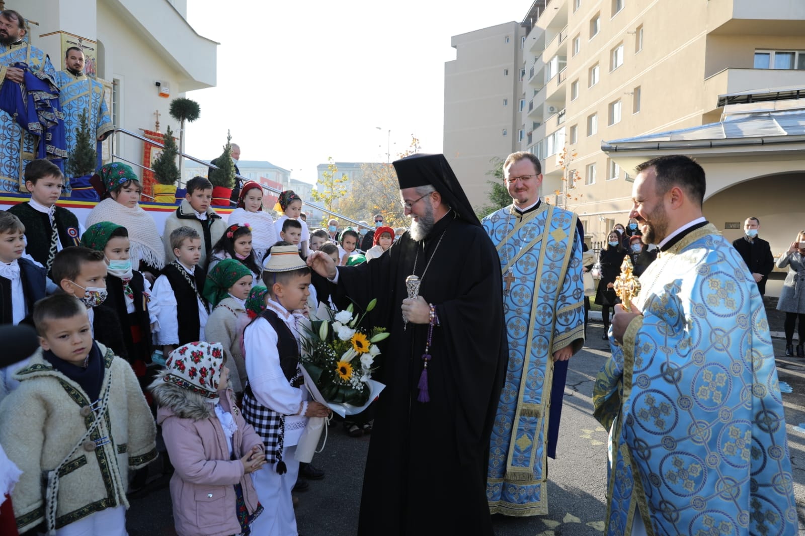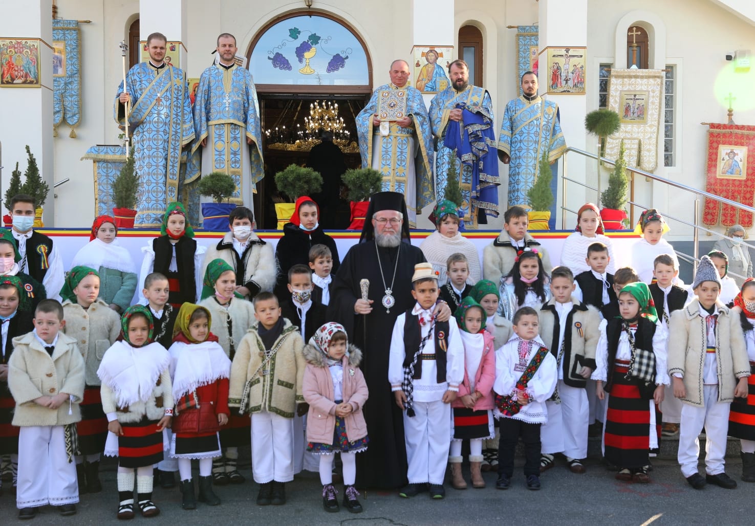 Preasfinţitul Iustin a fost primit cu multă bucurie de un grup de coconi şi cocoane de la clasa de balet a profesoarei Maria Seraz de la Palatul Copiilor din Baia Mare, îmbrăcaţi în frumoasele costume populare din zona Maramureşului Voievodal.
