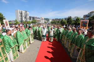Duminică, 20 iunie, praznicul împărătesc al Pogorârii Sfântului Duh, Cincizecimea sau Rusaliile, Preasfinţitul Părinte Iustin, Episcopul Maramureşului şi Sătmarului, a oficiat Sfânta Liturghie Arhierească împreună cu Preasfinţitul Părinte Timotei Sătmăreanul, Arhiereu-Vicar, pe esplanada Catedralei Episcopale „Sfânta Treime” din Baia Mare. Cu această ocazie a fost ţinut şi hramul sfântului locaş, ocrotit de Sfânta Treime, care se sărbătoreşte a doua zi de Rusalii.