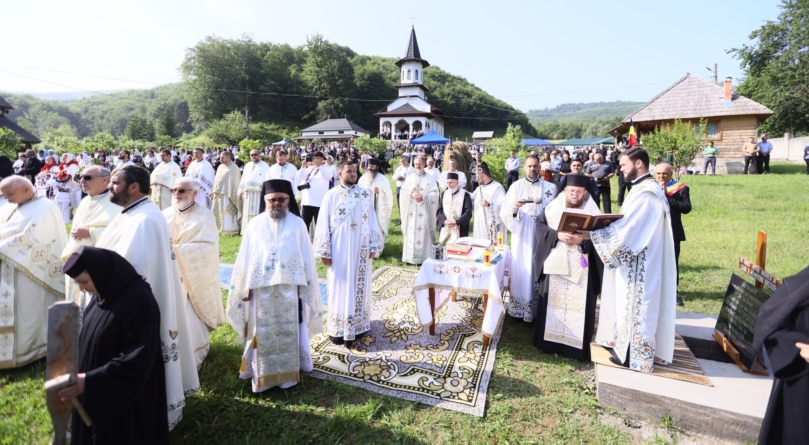 Înainte de începerea Sfintei și Dumnezeieștii Liturghii, Preasfințitul Părinte Timotei Sătmăreanul a pus piatra de temelie pentru noua biserică de lemn a mănăstirii ce va avea hramul „Sfinții Martiri Brâncoveni”, sărbătoriți în data de 16 august.