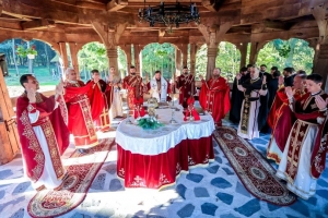 Luni, 14 septembrie, de marea sărbătoare închinată Praznicului Înălțării Sfintei Cruci, cu începere de la ora 10:00, Preasfințitul Părinte Timotei Sătmăreanul, Arhiereu vicar al Episcopiei Ortodoxe Române a Maramureșului și Sătmarului, a săvârșit Sfânta liturghie cu ocazia hramului Mănăstirii Săpânța Noul Peri, înconjurat de un sobor de preoți și diaconi.