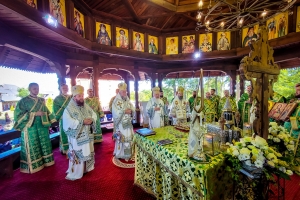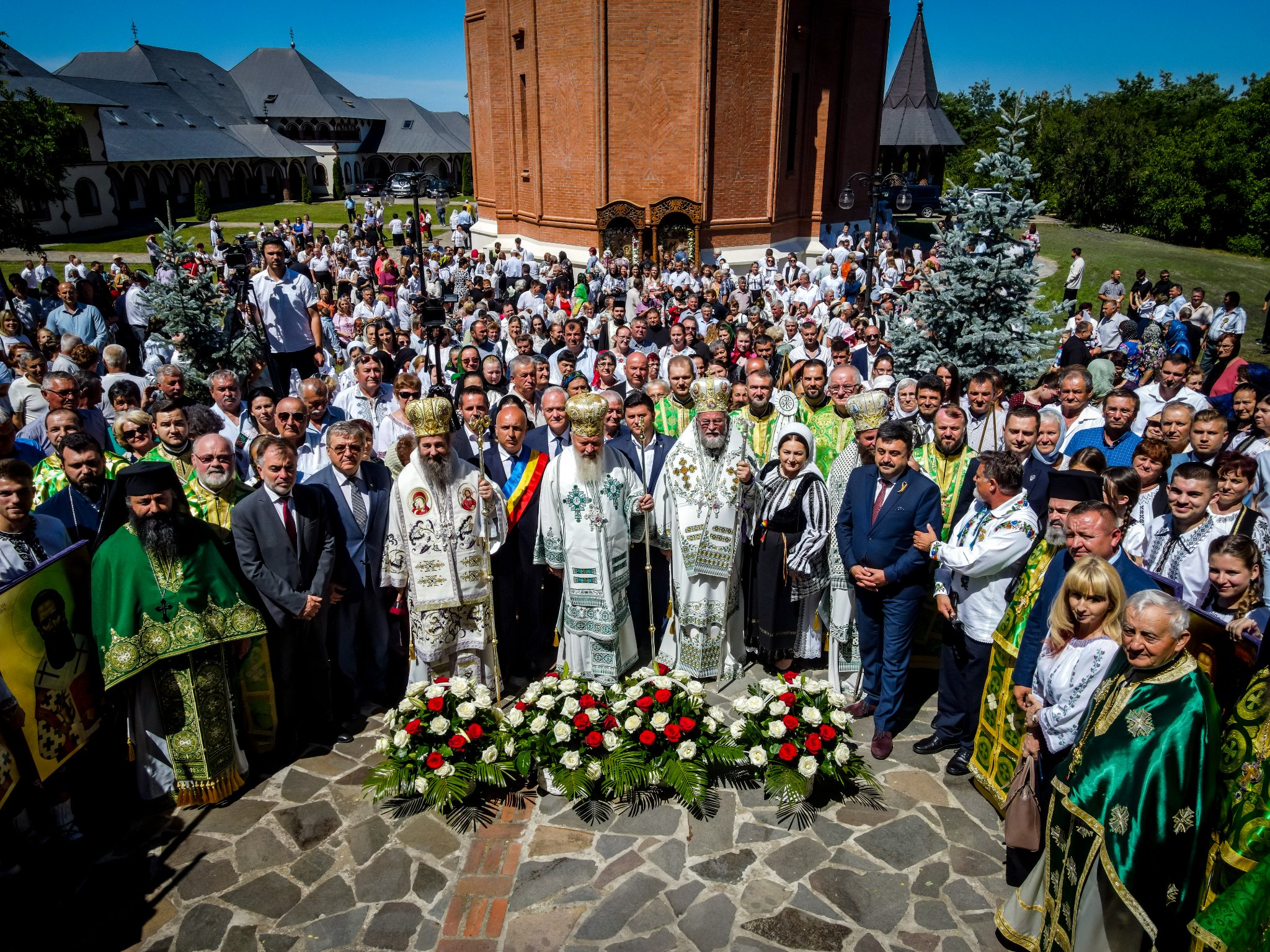 Patru ierarhi au oficiat Sfânta Liturghie pe Altarul de Vară al Mănăstirii, în prezenţa unei mari mulţimi de credincioşi. Au venit să se roage împreună cu poporul la acest hram Înaltpreasfinţitul Părinte Andrei, Mitropolitul Clujului, Maramureşului şi Sălajului, Preasfinţitul Părinte Iustin, Episcopul Maramureşului şi Sătmarului, Preasfinţitul Părinte Siluan, Episcopul ortodox al românilor din Ungaria şi Preasfinţitul Părinte Timotei Sătmăreanul, Arhiereu-vicar, ctitorul acestei mănăstiri în perioada celor 11 ani cât a fost stareţ aici.