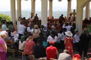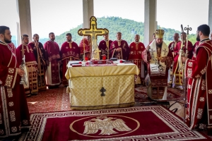 Sfânta Liturghie a fost săvârșită pe Altarul de vară al mănăstirii, cu participarea unui sobor numeros de preoți, între care amintim pe Pr. Virgil Jicărean, consilier eparhial al sectorului patrimoniu sacru și pictură bisericească, Pr. Mihai Chira, protopopul Vișeului, Arhim. Pantelimon lieș, de la Mănăstirea „Sfânta Ana” Rohia, Pr. Lect. Univ. Dr. Adrian Gheorghe Paul, de la Domeniul de Teologie Ortodoxă „Justinian Arhiepiscopul”, Protos. Agathon Oprișan, starețul Mănăstirii Petrova, Protos. Ioil Nicoară, starețul Mănăstirii Dealu Mare, Pr. Vasile Dunca, de la Parohia „Sfântul Iosif Mărturisitorul” din Sighetu Marmației, Pr. Vasile Ardelean, paroh în Crasna Vișeului, Pr. Vasile Grigor, slujitor la biserica cu hramul „Binecredinciosul Voievod Ștefan cel Mare și Sfânt” din incinta ITPF Sighet, Pr. Marius Iusvo, paroh în Rona de Jos, Pr. Florin Pop, paroh în Petrova, Pr. Gavriș Vancea, paroh în Săliște, – centru, Pr. Nicolae Pintea, paroh în Săliște I, Pr. Vasile Bizău, paroh în Bârsana – Valea Satului, Pr. Călin Vasile Simon, paroh în Strâmtura – Valea Satului, Arhid. Gherasim Nap, Diac. Ioan Onuț Păcurar, referent secretariat, alături de alți părinți invitați.