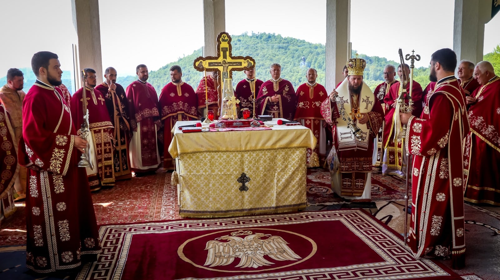 Sfânta Liturghie a fost săvârșită pe Altarul de vară al mănăstirii, cu participarea unui sobor numeros de preoți, între care amintim pe Pr. Virgil Jicărean, consilier eparhial al sectorului patrimoniu sacru și pictură bisericească, Pr. Mihai Chira, protopopul Vișeului, Arhim. Pantelimon lieș, de la Mănăstirea „Sfânta Ana” Rohia, Pr. Lect. Univ. Dr. Adrian Gheorghe Paul, de la Domeniul de Teologie Ortodoxă „Justinian Arhiepiscopul”, Protos. Agathon Oprișan, starețul Mănăstirii Petrova, Protos. Ioil Nicoară, starețul Mănăstirii Dealu Mare, Pr. Vasile Dunca, de la Parohia „Sfântul Iosif Mărturisitorul” din Sighetu Marmației, Pr. Vasile Ardelean, paroh în Crasna Vișeului, Pr. Vasile Grigor, slujitor la biserica cu hramul „Binecredinciosul Voievod Ștefan cel Mare și Sfânt” din incinta ITPF Sighet, Pr. Marius Iusvo, paroh în Rona de Jos, Pr. Florin Pop, paroh în Petrova, Pr. Gavriș Vancea, paroh în Săliște, – centru, Pr. Nicolae Pintea, paroh în Săliște I, Pr. Vasile Bizău, paroh în Bârsana – Valea Satului, Pr. Călin Vasile Simon, paroh în Strâmtura – Valea Satului, Arhid. Gherasim Nap, Diac. Ioan Onuț Păcurar, referent secretariat, alături de alți părinți invitați.
