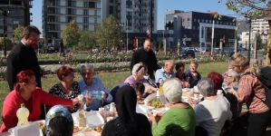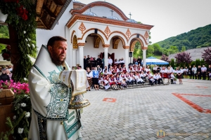 Cu această ocazie, Preasfinția Sa a săvârșit Sfânta și Dumnezeiasca Liturghie la Altarul de vară, amplasat în curtea lăcașului de închinare, înconjurat de un sobor de preoți și diaconi.