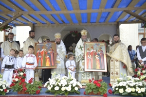 Într-un gest de reciprocitate și adâncă prețuire, Preasfințitul Părinte Iustin și Preasfințitul Părinte Timotei Sătmăreanul au primit din partea preoților și a credincioșilor câte o frumoasă icoană a Sfinților Martiri Brâncoveni.