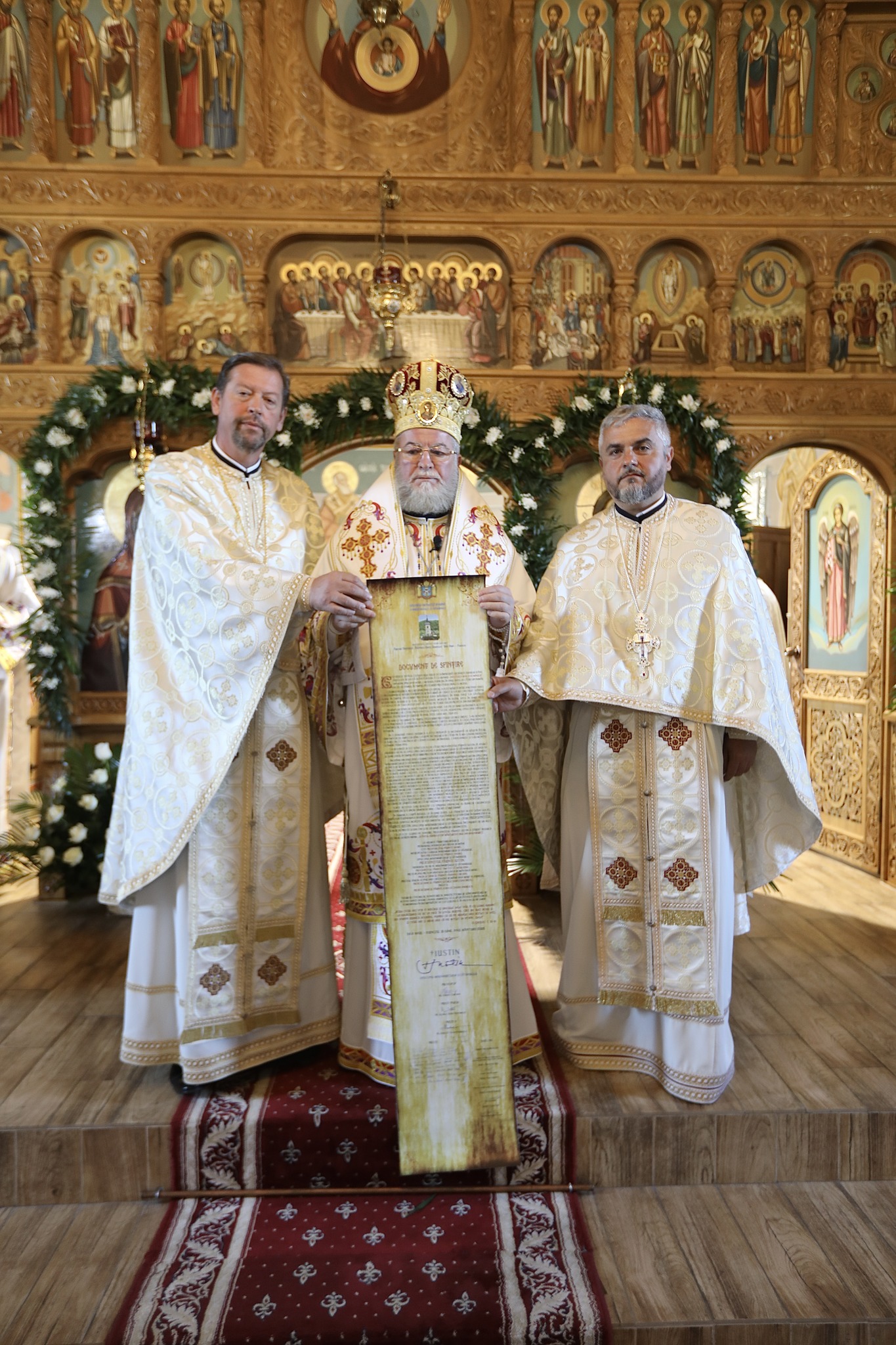 Toate acestea au impus târnosirea bisericii și oficierea slujbei de sfințire după toată rânduiala Bisericii Ortodoxe, care a fost săvârșită azi.