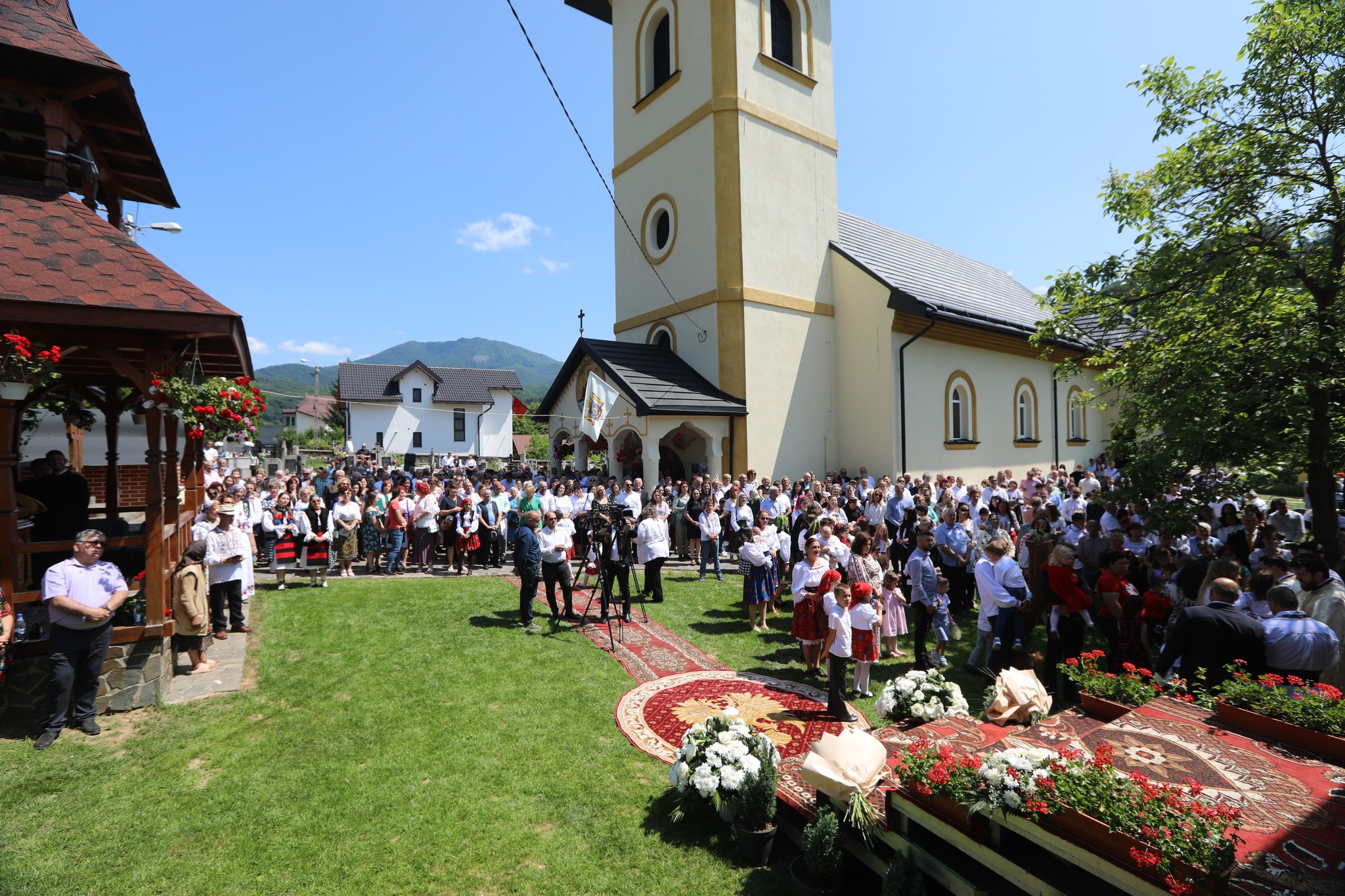 Am sfințit-o în 2020. Părintele Teodor Podină a ctitorit acea biserică și atunci, în acea toamnă când am sfințit-o, din păcate, datorită pandemiei, și-a încheiat și călătoria pământească. Dumnezeu să-l odihnească. Astăzi aici păstoresc părintele George Breaz, urmașul seniorului George Breaz, care a păstorit până în 1998, împreună cu părintele Octavian Andreica. Îi felicităm și arătăm apreciere și prețuire pentru ceea ce au realizat. Au construit și o capelă mortuară în incinta bisericii. Deci toate sunt după rânduială și toate sunt bune și frumoase, care, pe de o parte, arată vrednicia păstorilor de suflete, pe de altă parte, dărnicia credincioșilor, care susțin lucrările și, de ce nu, simfonia dintre biserică și autorități, biserică și școală, care aduce multă bucurie, pace și lumină. Slavă lui Dumnezeu pentru toate!”, a spus PS Iustin.