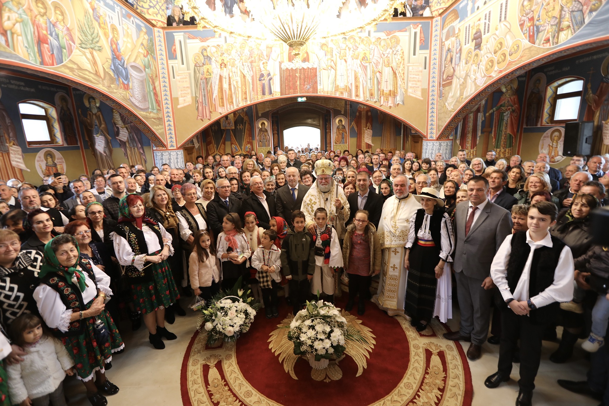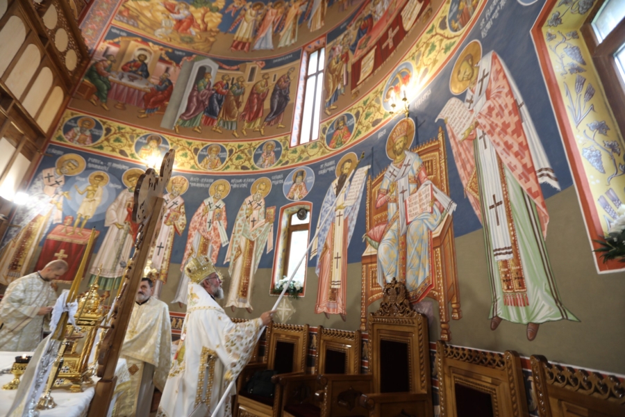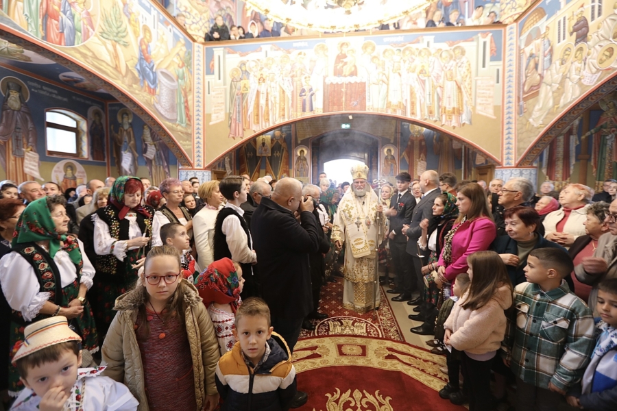 Din cauza vremii reci și ploioase, Sfânta Liturghie s-a desfășurat în interiorul bisericii nou târnosite.