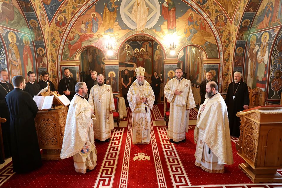 Cu acest prilej, Preasfinția Sa a săvârșit Sfânta Liturghie la Paraclisul din incinta Reședinței Episcopale. După Sfânta Liturghie, Preasfințitul Părinte Timotei Sătmăreanul a oficiat Slujba Tedeumului de mulțumire către Dumnezeu pentru toate darurile revărsate asupra Preasfințitului Episcop Iustin, a clerului și poporului din Episcopie.