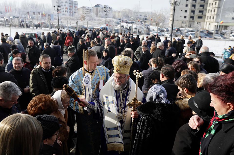 După încheierea Sfintei Liturghii, PS Părinte Iustin a ieşit împreună cu soborul şi credincioşii pe esplanada Catedralei, unde a oficiat slujba de sfinţire a Aghiasmei Mari.