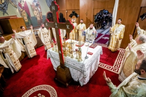 Ierarhul a fost înconjurat de un sobor de preoți și diaconi, iar credincioșii s-au bucurat să-l aibă în mijlocul lor.