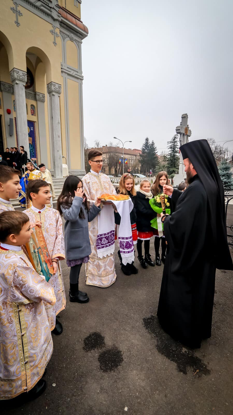 Ierarhul a fost înconjurat de un sobor de preoți și diaconi, iar credincioșii s-au bucurat să-l aibă în mijlocul lor.