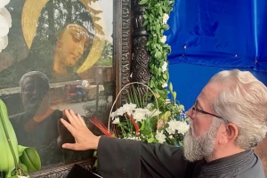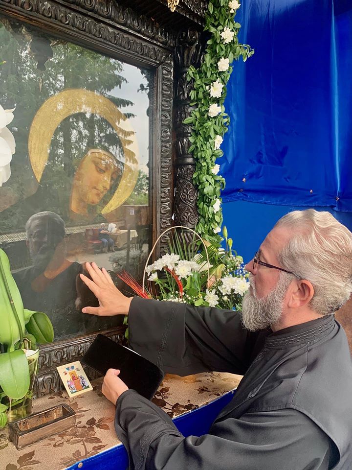După săvârșirea Sfintei Liturghii prilejuită de hramul Mănăstirii Rohia, Preasfințitul Părinte Iustin, Episcopul Maramureșului și Sătmarului, înainte de porni spre Reședința Episcopală din Baia Mare, s-a închinat la icoana făcătoare de minuni a Maicii Domnului – care a fost așezată la intrarea în incinta mănăstirii, aproape de mormântul Înaltpreasfinţitului Părinte Arhiepiscop Justinian Chira – mulțumind lui Dumnezeu și Maicii Domnului pentru această binecuvântată, împărătească și solemnă zi de sărbătoare.
