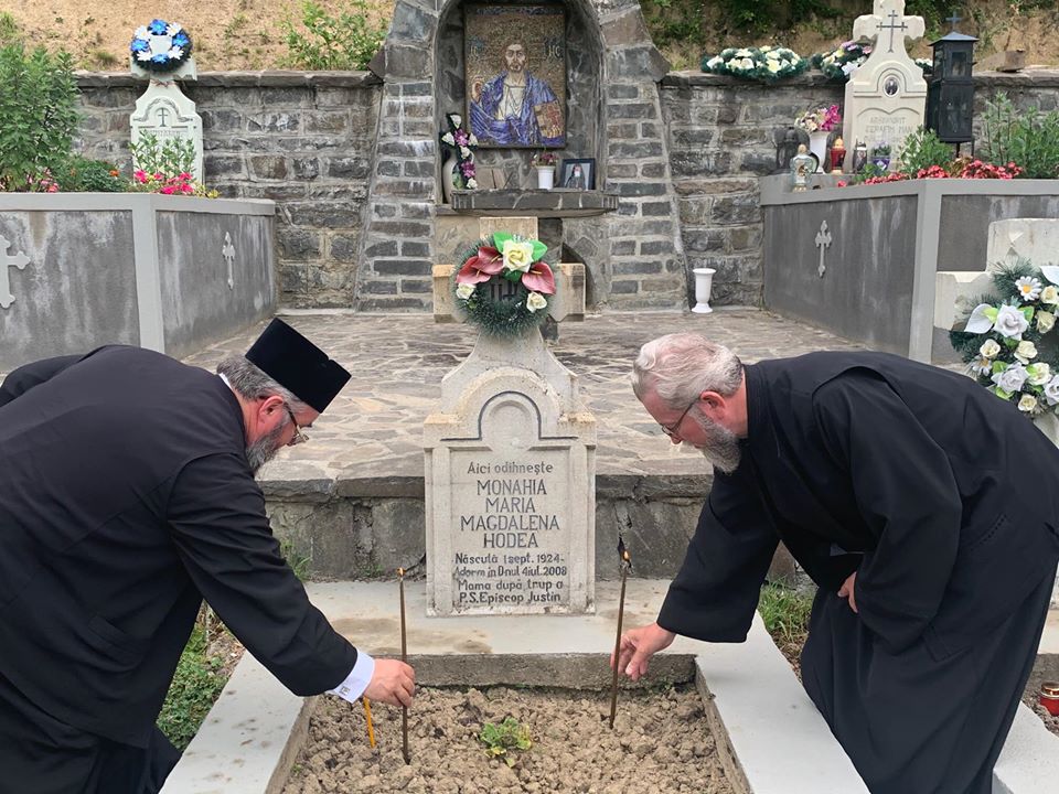 Preasfinția Sa s-a recules și a aprins lumânări la mormintele Înaltpreasfințiului Părinte Arhiepiscop Justinian, arhimandritului Serafim Man, monahului Nicolae Steinhardt (Delarohia), precum și la mormântul mamei după trup – monahia Maria Magdalena Hodea.