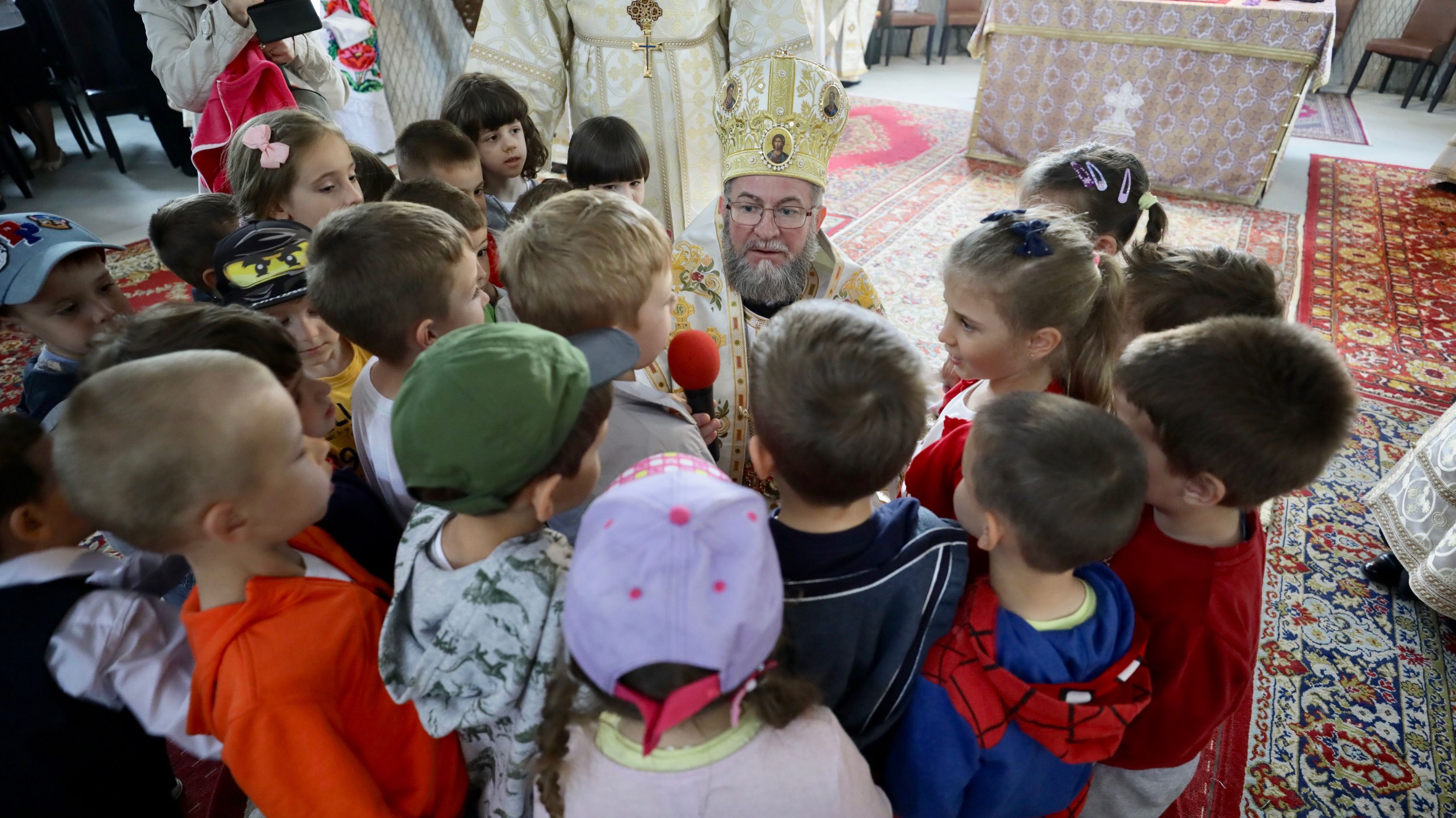 Aceasta a fost prima Sfântă Liturghie care s-a săvârșit în biserica propriu-zisă, aflată în stadiu de pictură, nu în demisolul acesteia cum se făcea până în prezent.