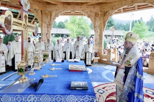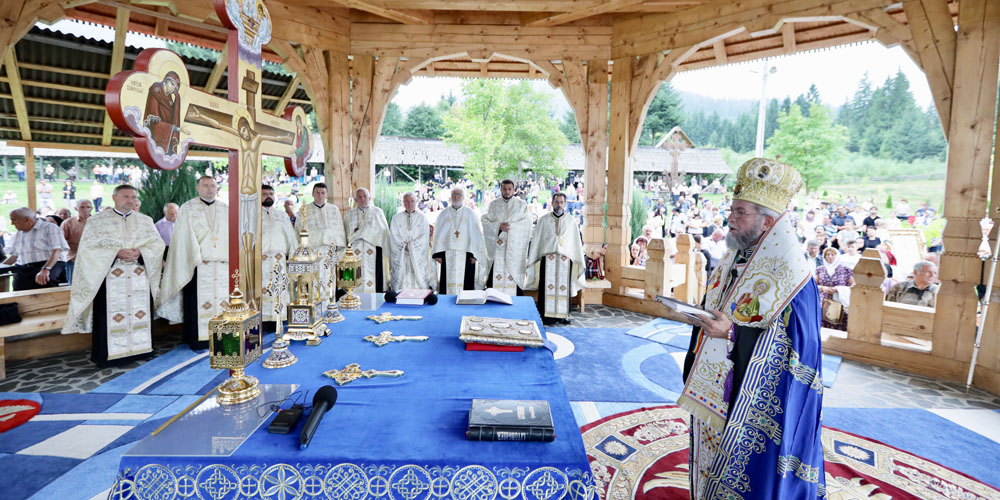 Miercuri, 14 august, în ajunul praznicului Adormirea Maicii Domnului, cu începere de la ora 18.00, Preasfinţitul Părinte Iustin, Episcopul Maramureşului şi Sătmarului, a oficiat, în altarul de vară al Mănăstirii Moisei, în fruntea unui sobor de preoţi şi diaconi, slujba Vecerniei unită cu Litia şi a rostit cuvânt de învăţătură.