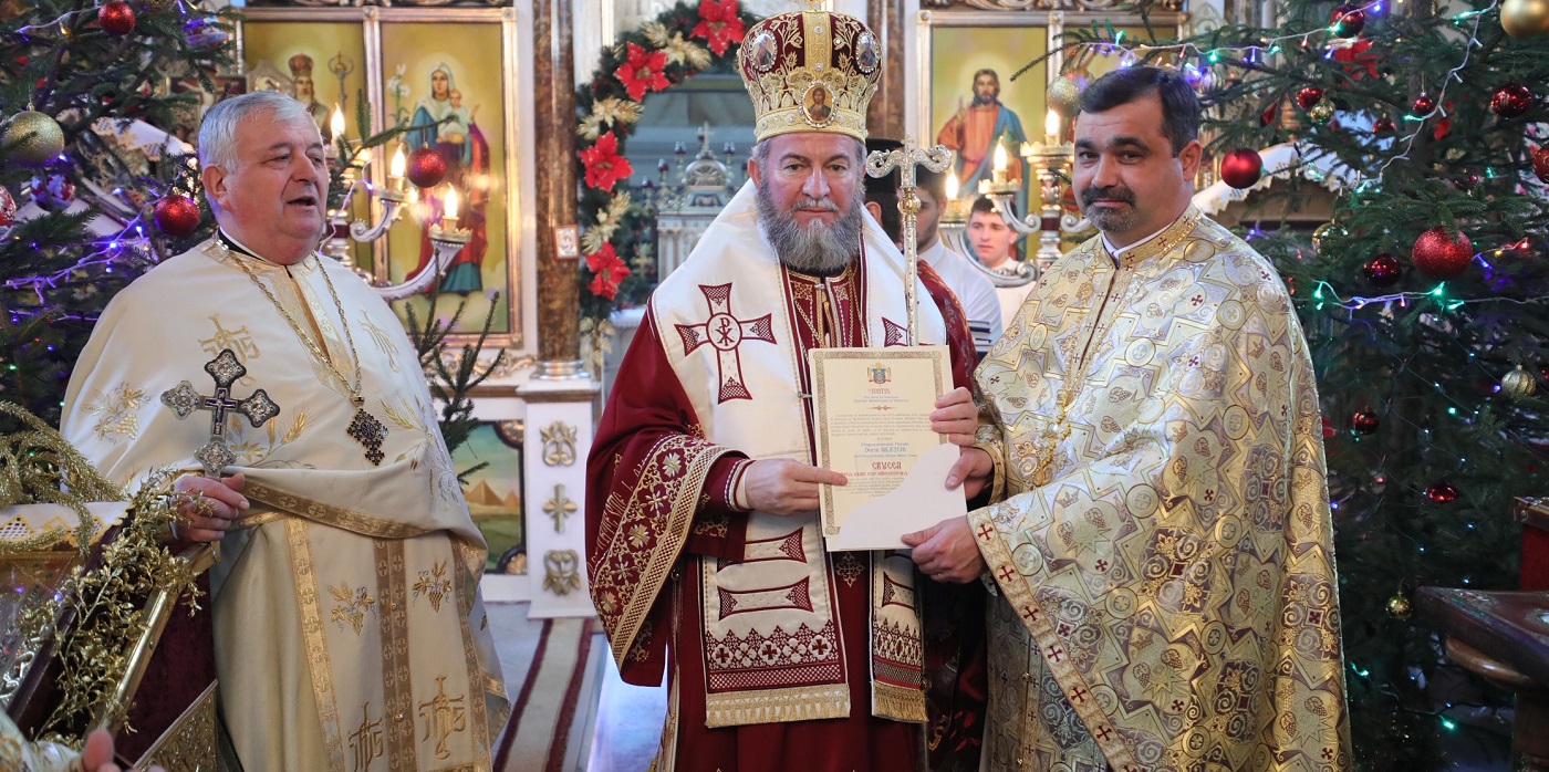 PS Părinte Episcop Iustin a conferit preotului paroh Dorin Bileţchi cea mai importantă distincţie a Episcopiei Maramureşului şi Sătmarului, Crucea „Sfântul Ierarh Iosif Mărturisitorul din Maramureș” care, de naştere a fost din Maramureşul din dreapta Tisei. „În semn de înaltă apreciere pentru activitatea pastoral-misionară,edilitar-gospodărească și social-filantropică desfășurată în mijlocul credincioșilor din Parohia Ortodoxă Slatina (Ucraina), în cei 25 de ani de păstorire; pentru râvna și fidelitatea față de sfânta noastră credință ortodoxă strămoșească și pentru relațiile deosebite cu Episcopia Ortodoxă Română a Maramureșului și Sătmarului” – a fost motivația acestui gest. Primarului Slatinei, Gheorghe Uhali i-a oferit monografia „Chivote ale credinţei” a celor 40 de mănăstiri şi schituri din Eparhia Maramureşului şi Sătmarului.