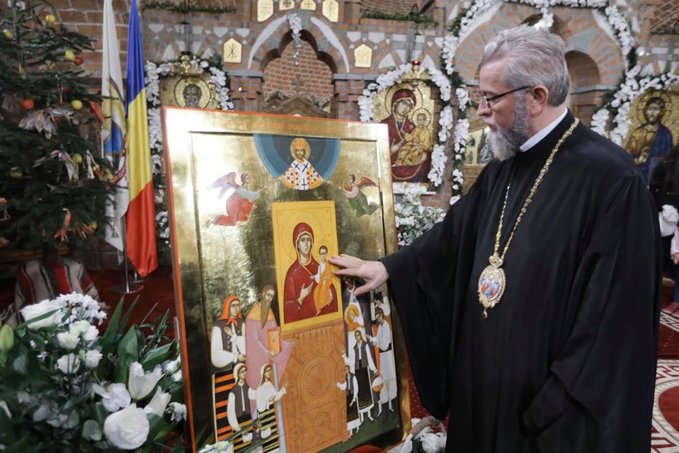 Marți, 31 decembrie, de la ora 23.30, PS Părinte Iustin, Episcopul Maramureşului şi Sătmarului, a oficiat împreună cu soborul de preoţi şi diaconi ai Catedralei Episcopale „Sfânta Treime” din Baia Mare slujba care se săvârşeşte în noaptea trecerii dintre ani. La final, PS Părinte Iustin a prezentat icoana ”Familia creștină sub ocrotirea Maicii Domnului” care a fost pictată cu prilejul Anului Omagial 2020 („Anul omagial al pastorației părinților și copiilor” și „Anul comemorativ al filantropilor ortodocși români”). Icoana a fost pictată de către Gabriel Solomon din Cluj-Napoca și O reprezintă reprezintă pe Maica Domnului care, în mod simbolic, ocrotește cele două familii: una preoțească și cealaltă, mirenească, laică, în mijlocul lor faflându-se o autentică poartă maramureșeană. În prima zi a anului, după Sfânta liturghie, aceasta a fost sfințită și așezată în Catedrala Episcopală, spre închinare credincioșilor – a informat arhid. Adrian Dobreanu (responsabil Comunicații Media-online).