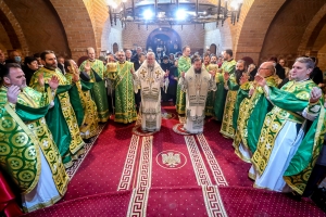 La sfârşitul Sfintei Liturghii, cei doi Ierarhi au primit din partea părintelui stareţ Spiridon Belei şi a obştii mănăstirii câte o frumoasă icoană cu Sfântul Paisie de la Neamţ, informează Andrei Fărcaş,