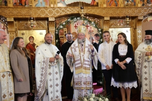 După binecuvântarea capelei de cimitir, a fost săvârşită Sfânta Liturghie Arhierească în interiorul bisericii cu hramurile „Sfinţii Arhangheli Mihail şi Gavriil” şi „Duminica Tuturor Sfinţilor” ridicată în localitate în urmă cu 150 de ani.