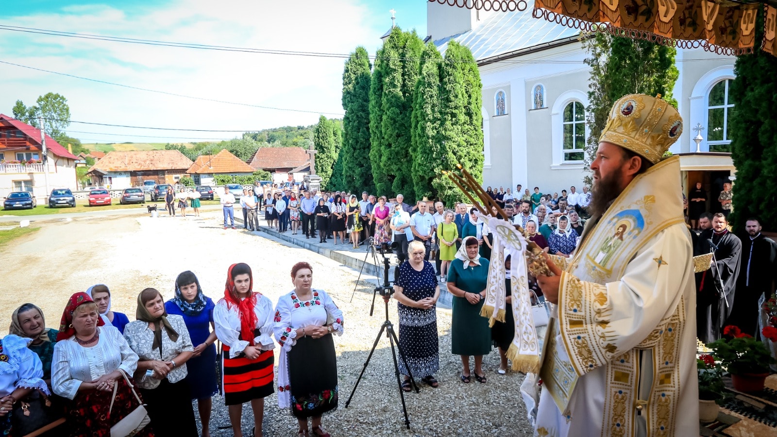 La final, părintele paroh a mulțumit ierarhului pentru prezență și slujire, și, a dăruit, din partea credincioșilor, o icoană cu praznicul Adormirii Maicii Domnului și un coș de flori.