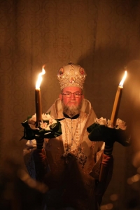În dangăt de clopote şi de toacă, Slujba Învierii Domnului a început în interiorul Catedralei Episcopale „Sfânta Treime” din Baia Mare, la ora 24:00, unde Preasfinţitul Părinte Iustin, Episcopul Maramureșului și Sătmarului a oferit Sfânta Lumină tuturor credincioşilor.Preasfinţitul Părinte Iustin, însoţit de soborul slujitor, de diaconi, cântăreți şi teologi, a ieşit pe esplanada Catedralei, unde a oficiat Slujba Învierii, după ce întreg soborul şi credincioşii au înconjurat sfântul lăcaș de închinare.