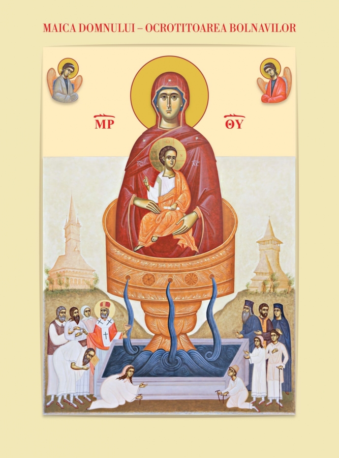 „Cu ajutorul lui Dumnezeu și al Maicii Domnului, am reușit și de această dată, așa cum am făcut-o în fiecare an de la primirea toiagului Sfântului Ierarh Iosif Mărturisitorul, toiag pe care l-a purtat cu vrednicie timp de 26 de ani, Înaltpreasfințitul Părinte Arhiepiscop Justinian, să realizăm o icoană specială. Astfel, din anul 2016, ne-a fost încredințat nouă, și, cu această ocazie, a Anului Omagial, vă oferim această icoană intitulată „Maica Domnului, Ocrotitoarea Bolnavilor”, special pictată pentru credincioșii din Episcopia Maramureșului și Sătmarului, spre cinstirea, închinarea și vindecarea tuturor, atât de boli sufletești, cât și de neputințe trupești”, a explicat Preasfințitul Părinte Iustin.