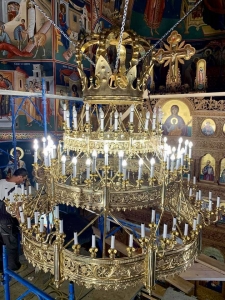 La Mănăstirea Rohia a fost montat un candelabru cu coroană produs în Rusia (FOTO)