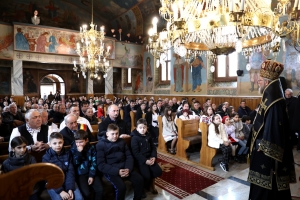 La final, părintele paroh a mulțumit Preasfințitului Părinte Episcop Iustin pentru prezența în mijlocul credincioșilor și pentru slujire, și, în semn de recunoștință și prețuire, a oferit Preasfinției Sale o icoană cu Sfinții Arhangheli Mihail și Gavriil, ocrotitorii bisericii, și un coș cu flori.