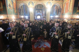 Joi, 14 martie, a patra zi a Postului Mare, Preasfinţitul Părinte Iustin, Episcopul Maramureşului şi Sătmarului, a oficiat Canonul cel Mare şi Liturghia Darurilor înainte Sfinţite la Mănăstirea Rohia.