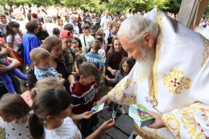 Cu acest prilej, la altarul de vară al așezământului monahal, de la ora 10:00, a fost oficiată Sfânta Liturghie de către Înaltpreasfinţitul Părinte Andrei, Arhiepiscopul Vadului, Feleacului și Clujului și Mitropolitul Clujului, Maramureșului și Sălajului, împreună cu Preasfințitul Părinte Macarie, Episcopul Europei de Nord, și Preasfințitul Părinte Timotei Sătmăreanul, Arhiereul-vicar al Episcopiei Maramureșului și Sătmarului. Alături de cei trei ierarhi au slujit consilieri și protopopi din cele două eparhii, stareți și duhovnici ai mai multor mănăstiri, precum și alți preoți invitați.