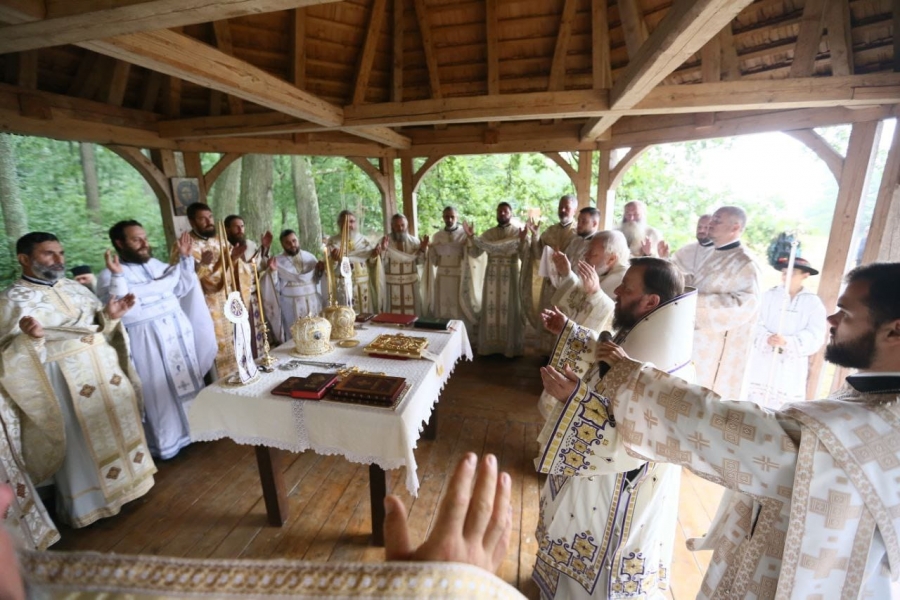 Cu acest prilej, la Altarul de vară al așezământului monahal, Sfânta Liturghie a fost oficiată de Înaltpreasfințitul Părinte Andrei, Arhiepiscopul Vadului, Feleacului și Clujului și Mitropolitul Clujului, Maramureșului și Sălajului, împreună cu Preasfințitul Părinte Timotei Sătmăreanul, Arhiereul-vicar al Episcopiei Maramureșului și Sătmarului, alături de un sobor de preoți și diaconi.