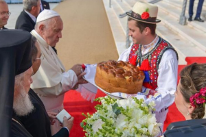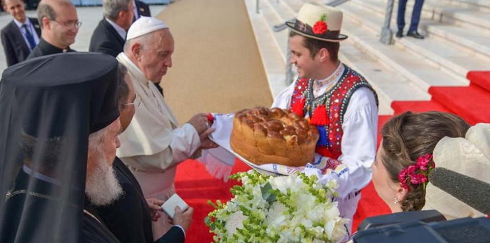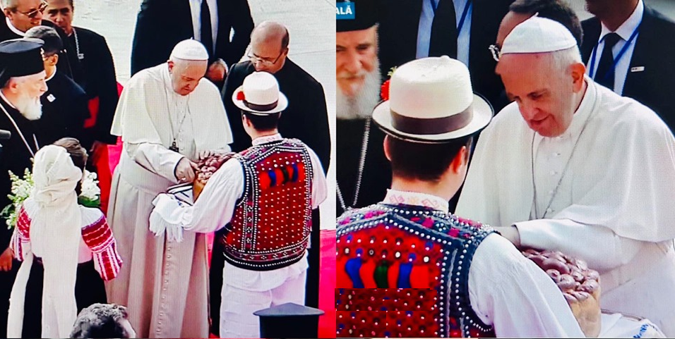 Maramureșeanul Paul Ananie e cel care l-a întâmpinat pe Papa Francisc cu pâine şi sare (GALERIE FOTO)