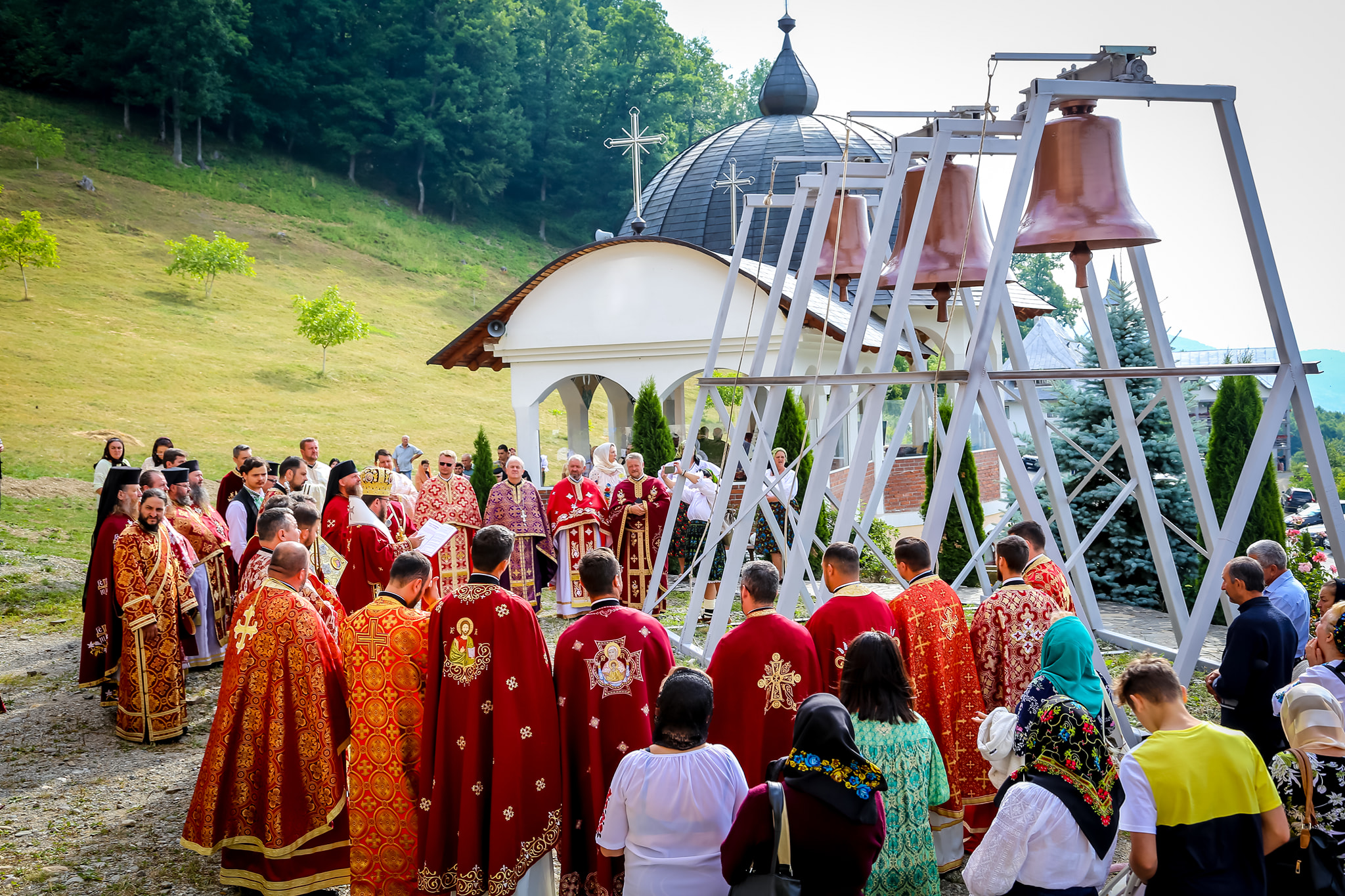 Înainte de începerea Sfintei Liturghii, Preasfințitul Părinte Timotei Sătmăreanul a binecuvântat și sfințit cele trei clopote care au fost așezate lângă Altarul de vară.