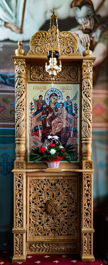 „Cu ajutorul lui Dumnezeu și al Maicii Domnului, cu binecuvântarea Preasfințitului Părinte Episcop Iustin și cu sprijinul unor binefăcători care doresc să rămână „anonimi”, biserica noastră a fost împodobită cu o frumoasă Axioniță având pictată pe Maica Domnului Pantanassa, izbăvitoare de cancer și de boli sufletești și trupești, fiind o copie după modelul grecesc care se află spre închinare la Sfânta Mănăstire Vatoped din Sfântul Munte Athos și care este făcătoare de minuni”, anunță preotul paroh Adrian Dobreanu.