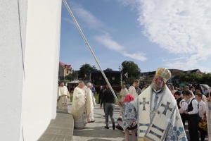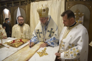După Slujba de sfințire, în Altarul deschis, special amenajat pentru acest eveniment, s-a săvârșit Sfânta Liturghie. Din sobor: Pr. Marcel Malanca, protopopul Oașului, Arhim. Dr. Emanuil Rus, starețul Mănăstirii Bixad, Pr. Conf. Univ. Dr. Adrian Paul, parohul bisericii din Certeze, Arhid. Teodosie Bud, consilier eparhial, Arhid. Ionuț Todorca, secretar eparhial, Arhid. Dr. Nifon Motogna, administratorul Catedralei Episcopale „Sfânta Treime” din Baia Mare. Biserica, înconjurată de mormintele celor care au dat și numele – eponim – al localității, a creat o atmosferă comunională aparte. Cei de departe, cei prezenți și cei plecați dintre noi se adunaseră parcă, în mod tainic, la această sărbătoare a bisericii și a localității lor. Peste capetele localnicilor de azi, răsfirați printre mormintele moșilor și strămoșilor, au răsunat, și de această dată, imnele liturgice interpretate de Grupul Psaltic „Theologos” al Episcopiei, condus de Arhid. Prof. Drd. Adrian Dobreanu. Pricesnele, atent alese, au fost interpretate magistral de tânăra solistă Iulia Ioana Vlad.