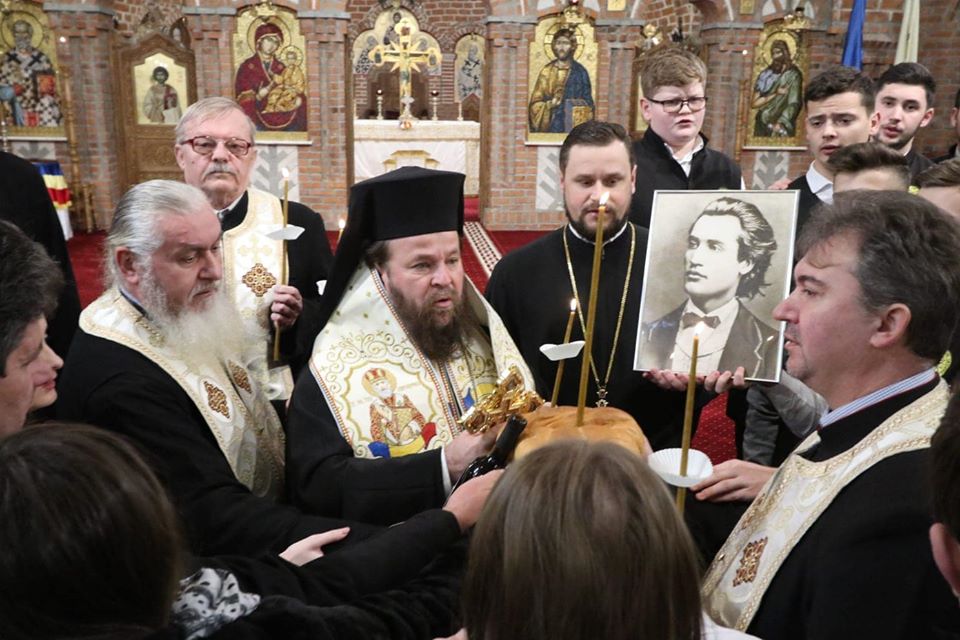 Miercuri, 15 ianuarie, PS Părinte Timotei Sătmăreanul, Arhiereu vicar al Episcopiei Ortodoxe Române a Maramureșului și Sătmarului, a oficiat, la Catedrala Episcopală „Sfânta Treime” din Baia Mare, Slujba Parastasului pentru poetul național Mihai Eminescu.