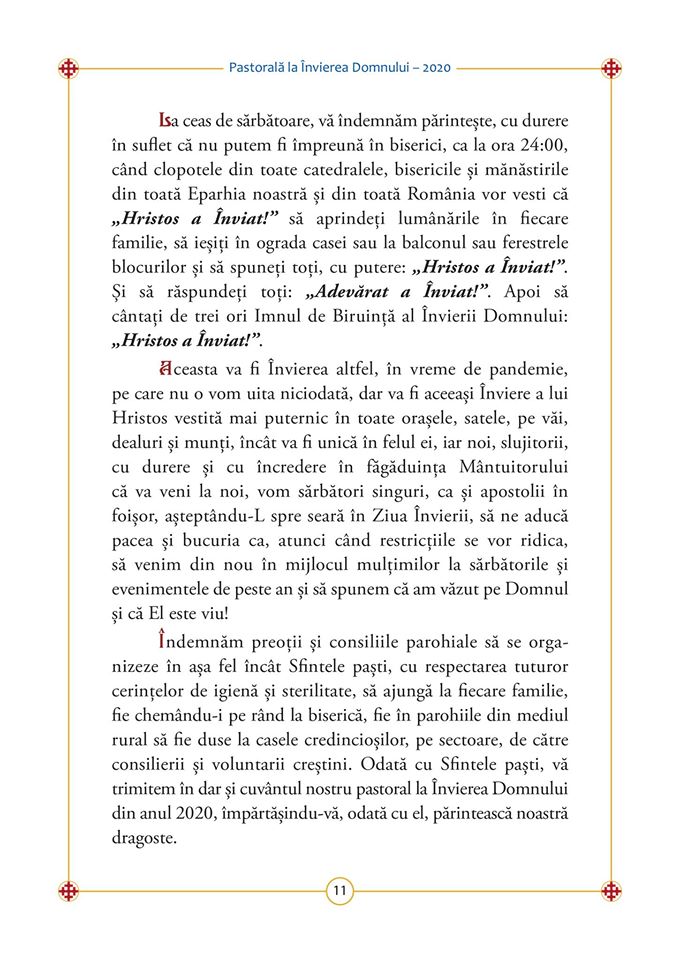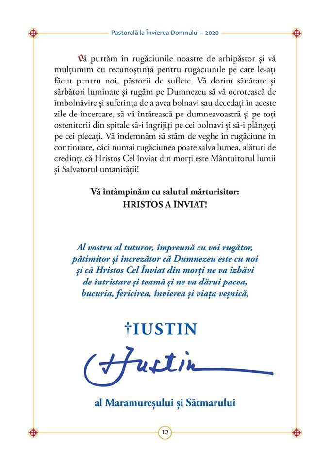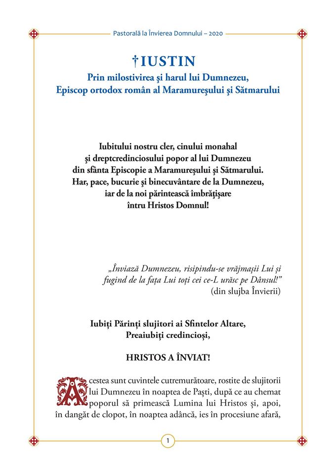 Pastorală la Învierea Domnului, anul 2020, a Preasfinţitului Părinte Iustin